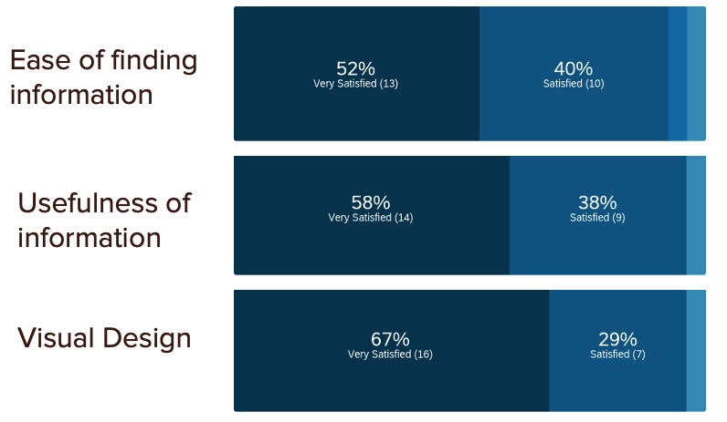 We conducted a user survey to gather feedback from our student, faculty and staff audiences about their level of satisfaction on the current page regarding the ease of finding and clarity of information, and the visual design.